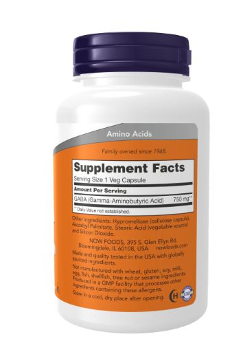 NOW GABA 750 mg – это надежное средство для поддержания психического здоровья, снятия стресса и улучшения качества сна, основанное на натуральной гамма-аминомасляной кислоте, которая помогает поддерживать баланс и спокойствие в условиях ежедневных нагрузок.