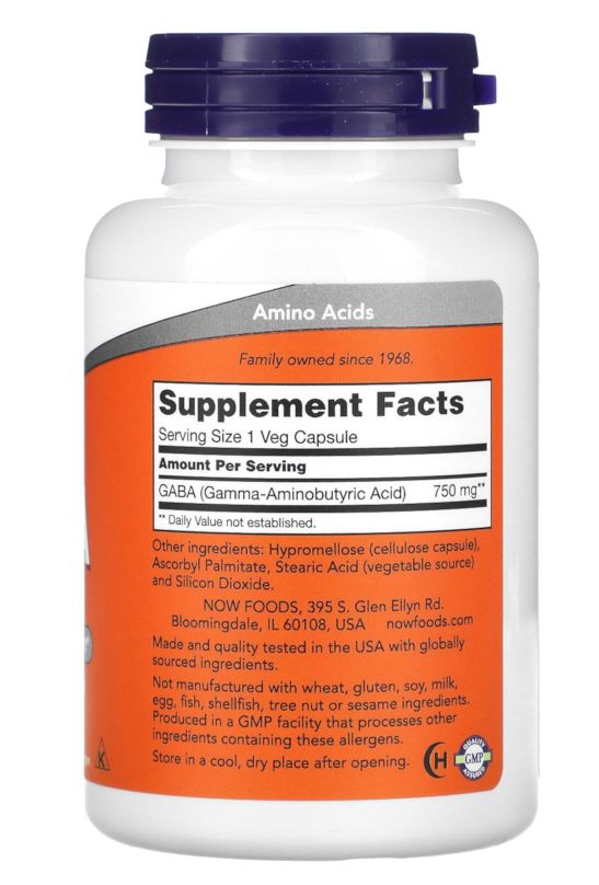 NOW GABA 750 mg – это надежное средство для поддержания психического здоровья, снятия стресса и улучшения качества сна, основанное на натуральной гамма-аминомасляной кислоте, которая помогает поддерживать баланс и спокойствие в условиях ежедневных нагрузок.