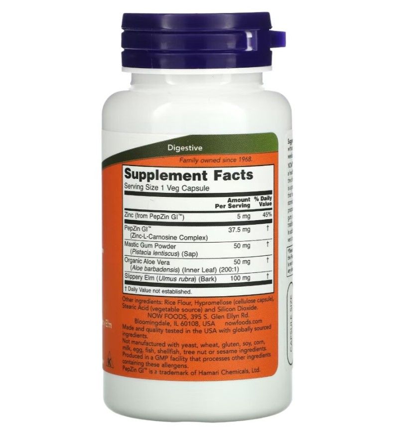 Поддержка здоровья слизистой оболочки: PepZin GI помогает поддерживать целостность и здоровье слизистой оболочки желудка и кишечника, что способствует снижению дискомфорта и поддержанию нормального пищеварения.