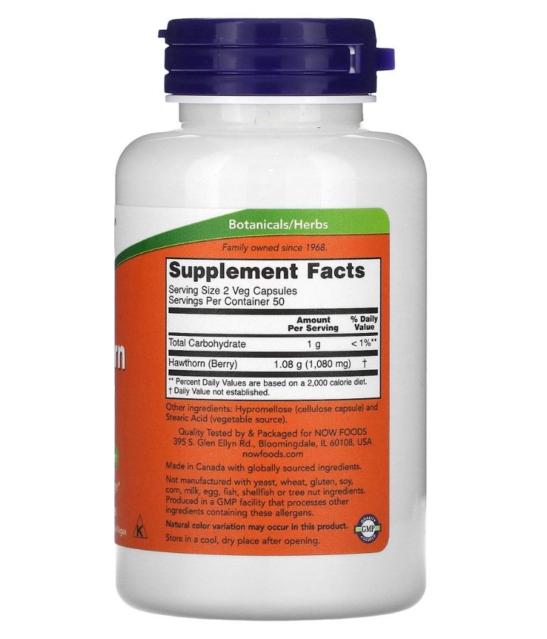 NOW Foods Hawthorn Berry / Ягоды боярышника 540 мг 100 вегетарианских капсул