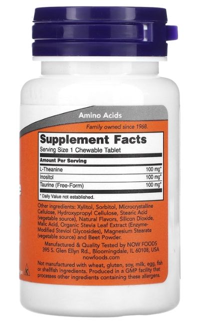 NOW L-Theanine 100 mg – это пищевая добавка, содержащая L-теанин, аминокислоту, известную своими расслабляющими и успокаивающими свойствами. L-теанин естественным образом содержится в зеленом чае и является популярным средством для снижения стресса и улучшения когнитивных функций.