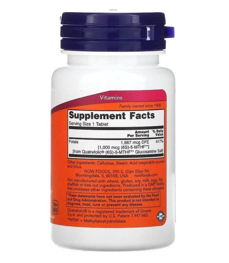 NOW Methyl Folate 1000 mcg — это пищевая добавка с метилфолатом, биологически активной формой фолиевой кислоты. Метилфолат (L-5-метилтетрагидрофолат или 5-MTHF) является готовой для использования формой фолата, которая не требует дальнейшего преобразования в организме, что делает его особенно полезным для людей с генетическими мутациями, препятствующими усвоению обычной фолиевой кислоты.