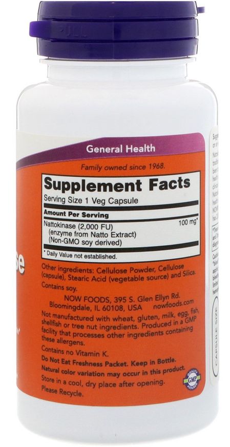 Наттокиназа Биологически активная добавка 100 мг содержит в своём составе фермент, который извлекается из натто. Так называется японское блюдо, которое представляет собой сброженные бобы сои. Вкусовые качества такой еды, конечно, на любителя. Впрочем, чтобы получить в полной мере пользу натто, вовсе не обязательно пробовать специфическое японское блюдо. Достаточно купить биологически активную добавку «Наттокиназа» от американского производителя NOW Foods.