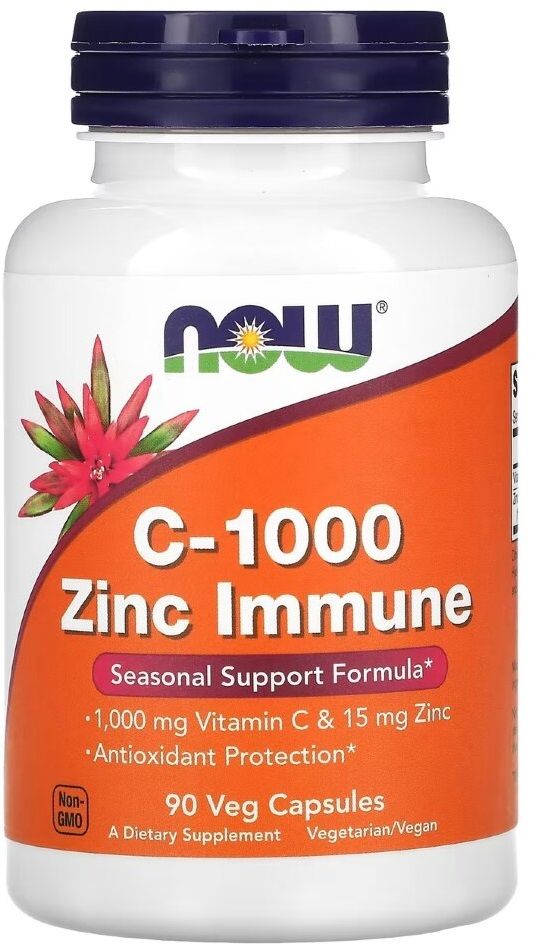 NOW C-1000 + Zinc Immune – это эффективный способ поддержать иммунную систему, улучшить состояние кожи и общую жизненную энергию благодаря комбинации витамина C и цинка.