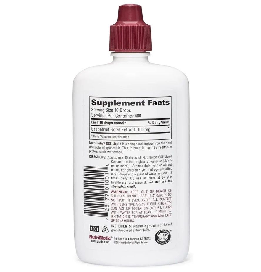 Жидкий концентрат NutriBiotic GSE имеет натуральный состав, полученный из семян и мякоти грейпфрута. Эта формула используется специалистами в сфере здравоохранения во всем мире.