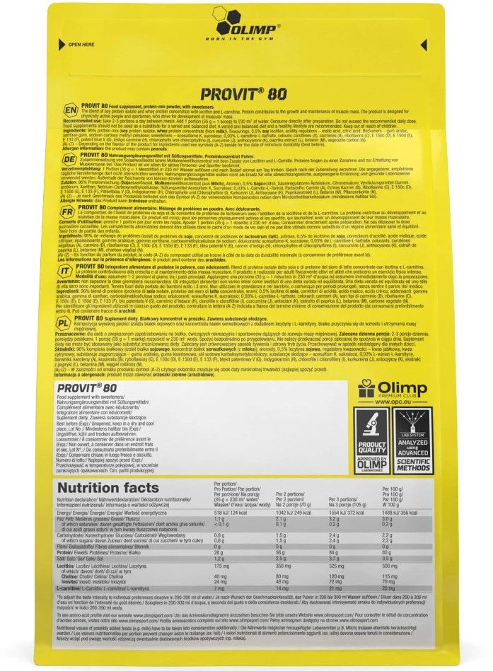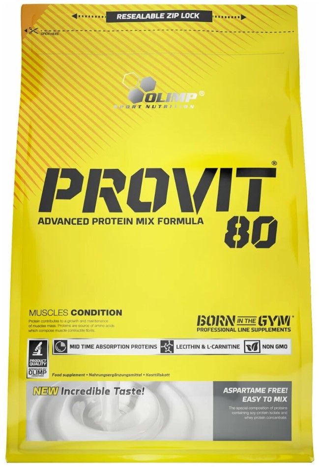 Протеиновый комплекс Olimp Provit 80 поддерживает положительный азотистый баланс в организме. Обеспечивает насыщение клеток энергией. Ускоряет процесс формирования новой мышечной ткани. Комплекс изготовлен на основе соевого изолята и концентрата сывороточного протеина.