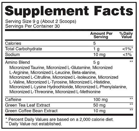 Amino Energy - это сбалансированная добавка направленная на увеличение и поддержание пиковой производительности атлета. Каждая его порция это 5 грамм микронизированных аминокислот, а именно, БЦАА, NO-бустеры, Глютамин и его прекурсоры, а также отдельный энергетический комплекс состоящий из зеленого чая, кофе и таурина. Несмотря на насыщенный состав, добавка низкокалорийная, проста в приготовлении и практически мгновенно усваивается. Более того, она максимально безопасна, не содержит сахара, глютамина и аспартама, а также имеет несколько классических вкусов, подкреплённых натуральными ингредиентами.