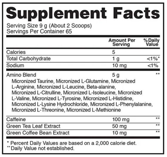 Amino Energy - это сбалансированная добавка направленная на увеличение и поддержание пиковой производительности атлета. Каждая его порция это 5 грамм микронизированных аминокислот, а именно, БЦАА, NO-бустеры, Глютамин и его прекурсоры, а также отдельный энергетический комплекс состоящий из зеленого чая, кофе и таурина. Несмотря на насыщенный состав, добавка низкокалорийная, проста в приготовлении и практически мгновенно усваивается. Более того, она максимально безопасна, не содержит сахара и аспартама, а также имеет несколько классических вкусов, подкреплённых натуральными ингредиентами.