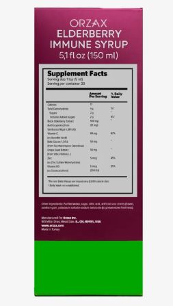 Orzax Elderberry Immune Syrup, 150 мл.