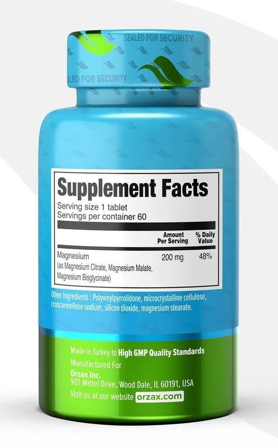 ТРОЙНОЙ КОМПЛЕКС МАГНИЯ: Магний является важным минералом, играющим важную роль в организме человека. Добавка магния Orzax содержит три формы магния; малат, глицинат и цитрат для оптимального усвоения и большего спектра преимуществ