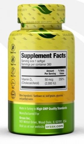 УКРЕПЛЕНИЕ ЗДОРОВЬЯ КОСТЕЙ И МЫШЦ: Прием витамина D3 2000 МЕ в дозе 50 мкг улучшает усвоение кальция для укрепления костей и зубов и повышает мышечную работоспособность. Мягкие гели D3 2000 IU от Orzax легко глотать, что делает их подходящими для людей, которым трудно глотать таблетки.