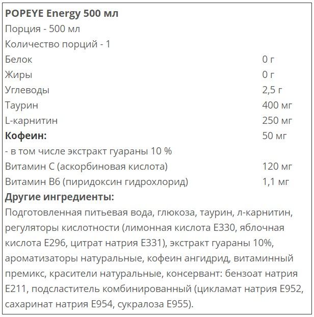 Energy (энергия)-специально разработанный комплекс эффективных тонизирующих ингредиентов, который подготовит Ваш организм для любых нагрузок, когда это необходимо.