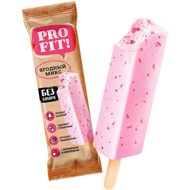 Pro Fit - про пользу. Это мороженое полезно всем, и детям, и взрослым, всем, кто заботится о своем здоровье и питании. Каждая порция содержит пребиотики, витамины и микроэлементы. Мы не добавляем в наше мороженое сахар, но оно все равно сладкое и безумно вкусное. Преимущества: содержит пребиотики, витамины и минералы; без сахара - только натуральные компоненты на основе стевии; без использования заменителей молочного жира; улучшает пищеварение.