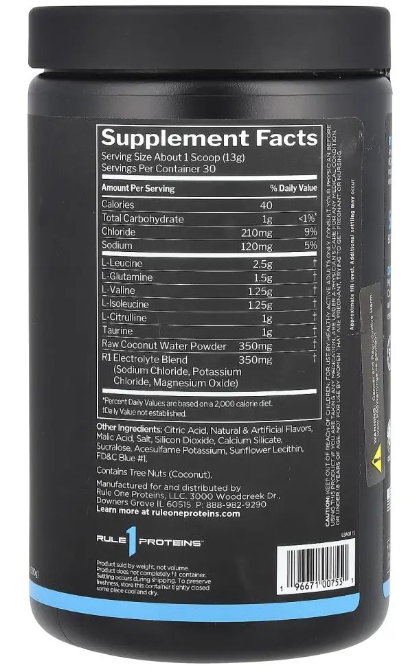 Насыщенная аминокислотами формула для повышения эффективности, сочетающая в себе аминокислоты с разветвленной цепью, глутамин, цитруллин и таурин для восстановления мышц, а также необработанную кокосовую воду и электролиты для дополнительной поддержки водного баланса.
