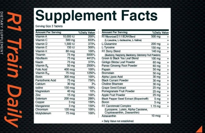 R1 TRAIN DAILY— это универсальный витаминно-минеральный комплекс фармацевтического качества, который содержит полный спектр всех необходимых витаминов , минералов, аминокислот и антиоксидантов.