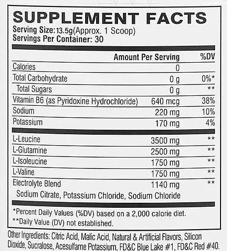 Лейцин, изолейцин и валин содержатся в соотношении 2:1:1. Важным аминокислотным элементом является глютамин. Все эти аминокислоты несут большую биологическую ценность для человека, который занимается бодибилдингом.