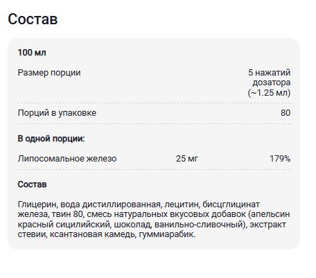 Состав: Глицерин, вода дистиллированная, лецитин, бисцглицинат железа, твин 80, смесь натуральных вкусовых добавок (апельсин красный сицилийский, шоколад, ванильно-сливочный), экстракт стевии, ксантановая камедь, гуммиарабик.