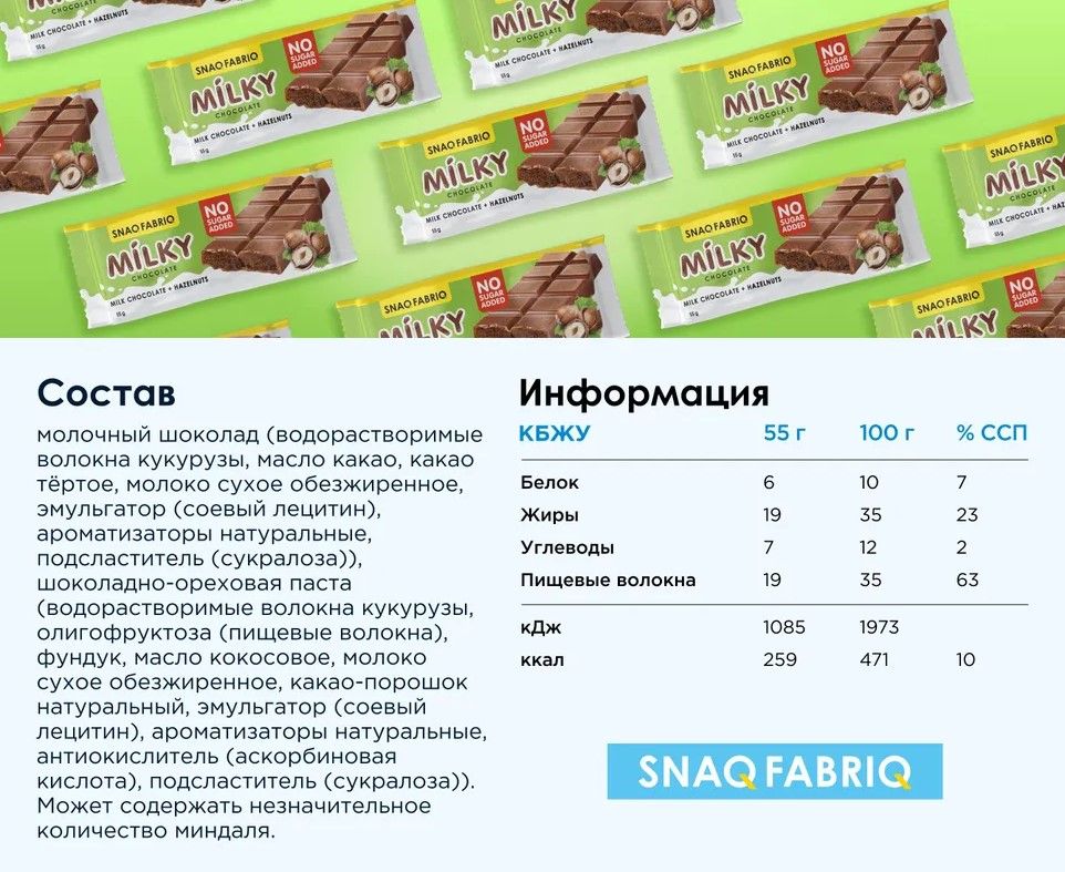 Snaq Fabric Молочный шоколад с начинкой, 55 гр.