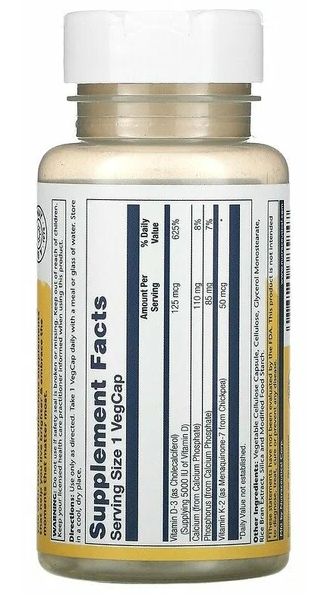 Высокоэффективная добавка витаминов K2 и D3. Каждая порция содержит 125 мкг или 5000 МЕ витамина D3, а также 50 мкг K2 в виде менахинона (МК-7) из нута.