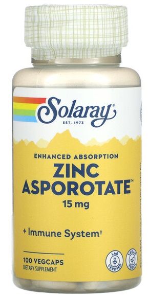 Solaray Zinc Asporotate 15 мг, 100 капс.
