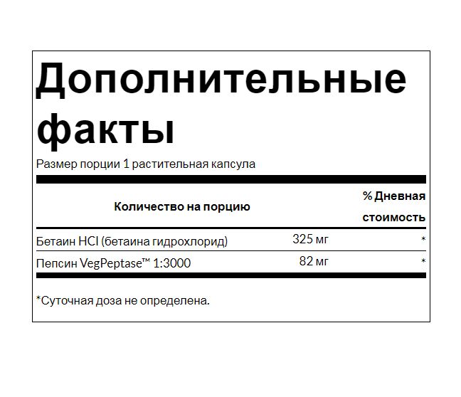 Проблемы с белком? Нам всем нужен белок в нашем рационе, но для некоторых из нас он представляет особую проблему для нашей пищеварительной системы. Swanson Betaine HCl (Бетаин) — это специальная формула, которая немного помогает вашему желудку, помогая ему более эффективно расщеплять белки. Он содержит VegPeptase™ — пепсин веганского происхождения — фермент, который помогает переваривать белки, а также гидрохлорид бетаина для поддержания надлежащего уровня pH в желудке. Вместе они составляют отличную пищеварительную команду, помогающую решать проблемы с белком.