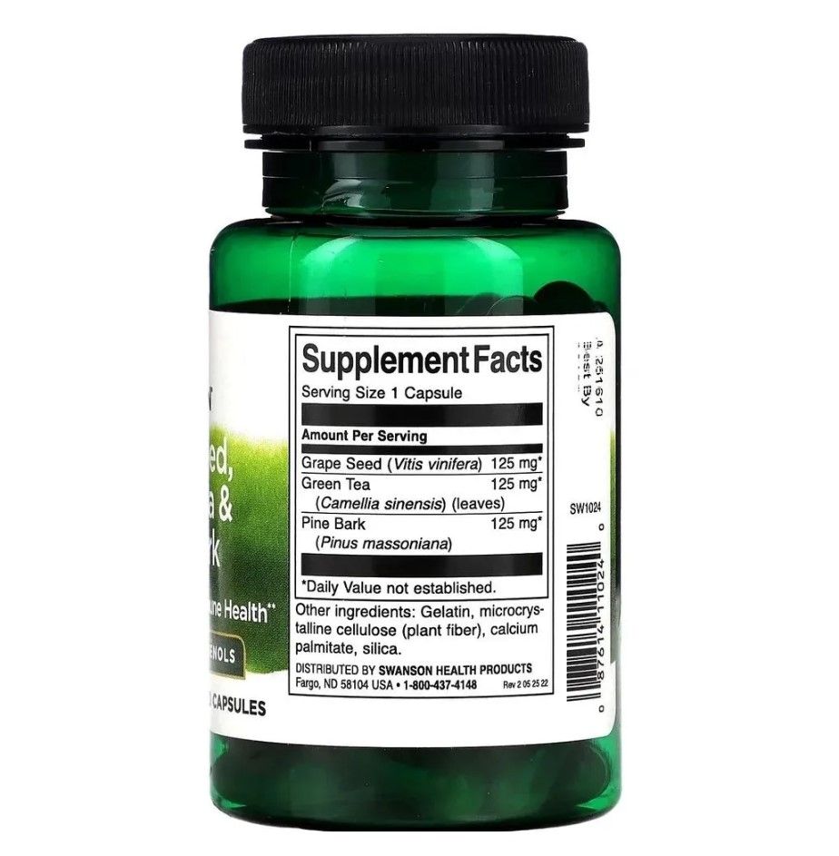 Swanson Grape Seed, Green Tea & Pine Bark Complex, 60 капс.