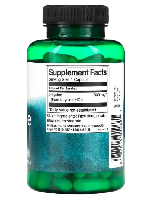 Swanson L-Lysine Free Form 500 мг, 100 капс.