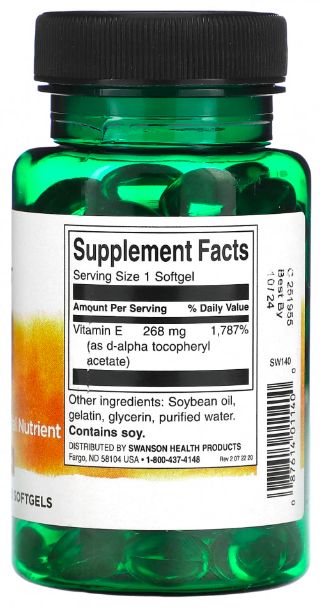 Витамин Е Swanson, Vitamin E 400 IU обеспечивает здоровье сердечно-сосудистой системы и обладает антиоксидантным свойством. Защита сердечно-сосудистой системы - лишь одно из многих преимуществ витамина Е. Его антиоксидантные свойства помогают защитить жизненно важные ткани организма от повреждений, вызванных свободными радикалами.