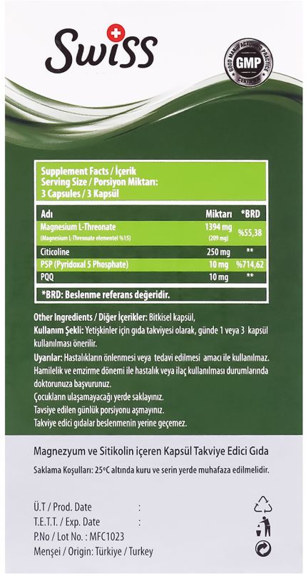 Swiss BORK Mag+Focus содержащий Магний L-треонат и цитиколин для здоровья мозга 60 капсул