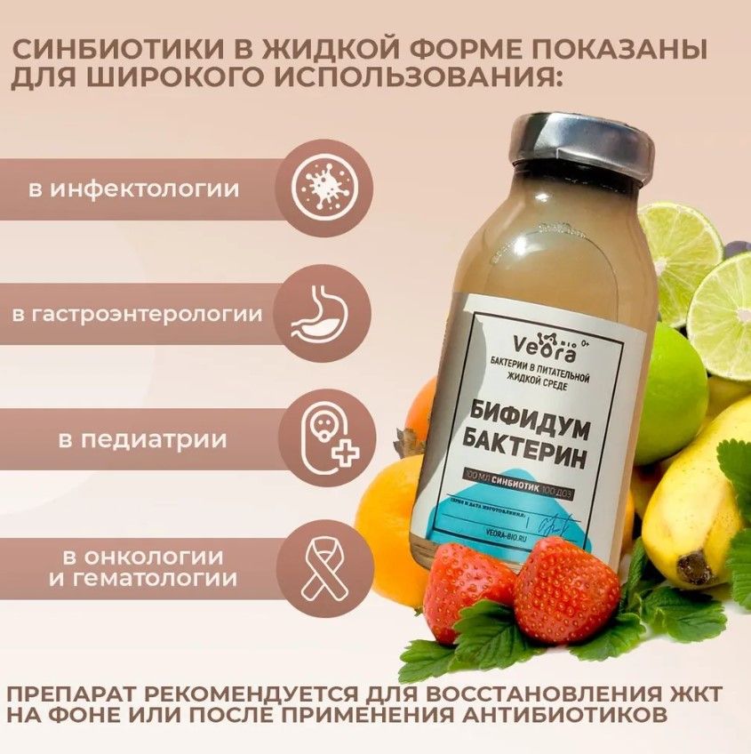 Синбиотики содержат суточную монокультуру бифидобактерий или лактобактерий, различных видов, в молочно-гидролизатной среде. Имеют вид мутной жидкости равномерного светло-коричневого цвета с различными оттенками, с нежным сгустком (осадком) и приятным кислым вкусом. Концентрация живых клеток в 1 мл. 10 в 8 степени, что соответствует одной дозе. Полностью натуральный, без консервантов, красителей, адаптеров вкуса.