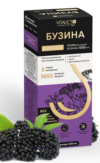 Vitauct Бузина Иммуно 100 мл - это инновационное натуральное средство, разработанное для поддержания и укрепления иммунитета у людей.