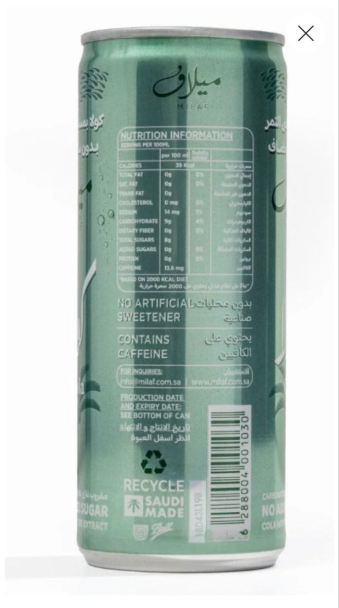 Milaf Cola позиционирует себя как альтернативу обычным газировкам без ущерба вкуса. Milaf Cola соответствует всем международным стандартам безопасности пищевых продуктов и является экологически чистой, поскольку производится из фиников